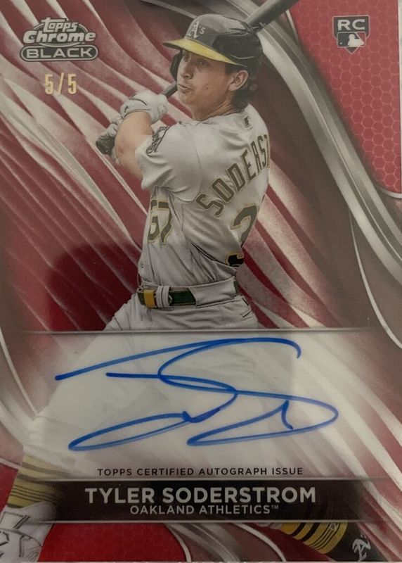 Auctions Ending Soon for Tyler Soderstrom 2024 Topps Chrome Black #CBA-TS Autographs - Red Refractor /5 Rookie RAW