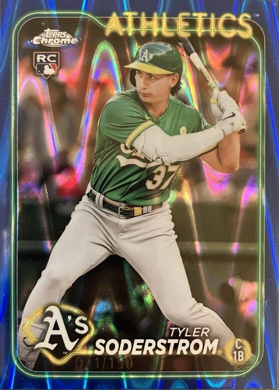 2024 Topps Chrome Tyler Soderstrom RC Blue RayWave /150 #298 A's Rookie