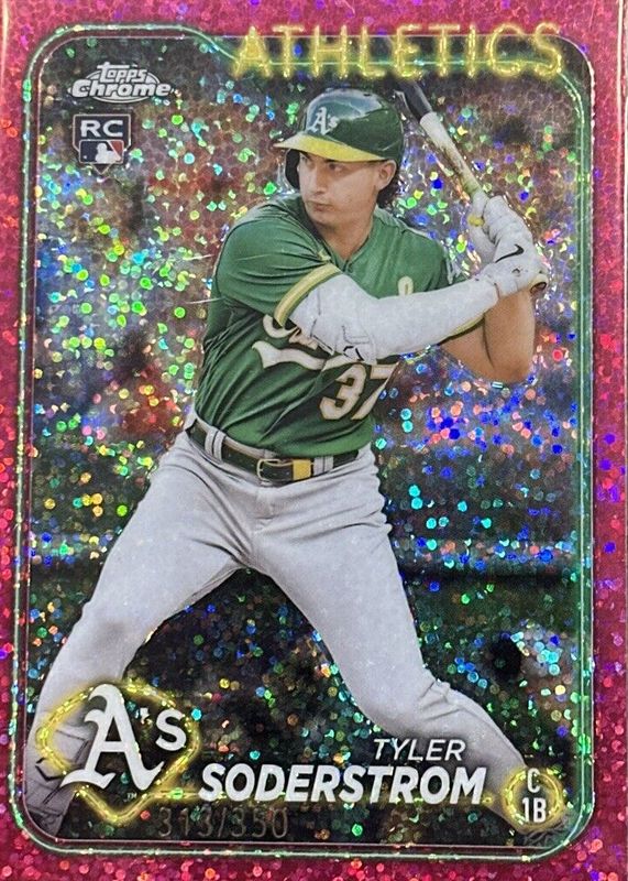 2024 Topps Chrome # 298 Tyler Soderstrom Magenta Sparkle RC /350. Athletics.