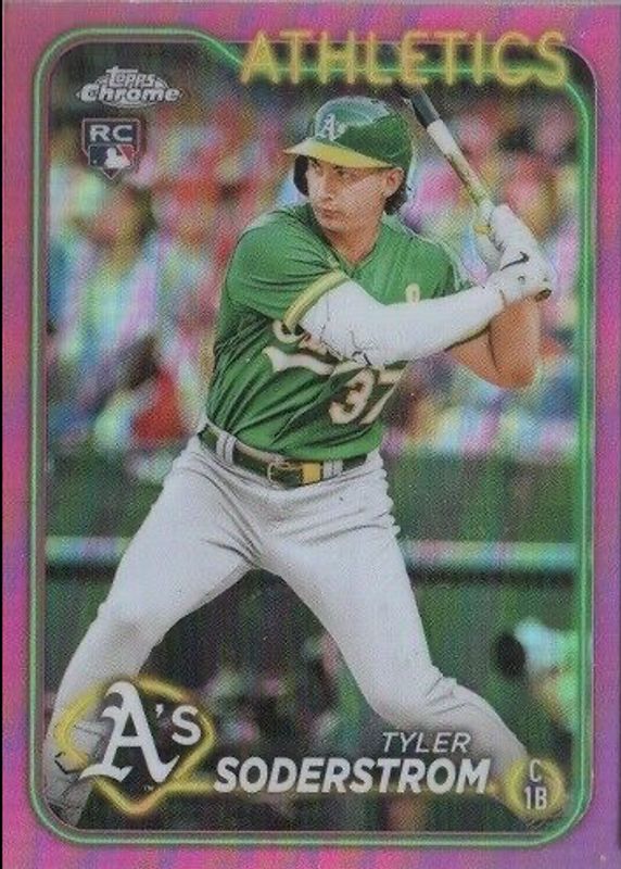 The Tyler Soderstrom 2024 Topps Chrome #298 Pink Refractor Rookie card in Raw condition has moved up $1.96 (+98.0%) in the last 30 days and was last sold for $3.96 .
