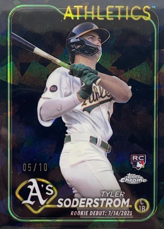This card is 1 of 7 Tyler Soderstrom's card variations in the 2024 Topps Chrome Update Sapphire Edition set being tracked by Sports Card Investor, including Rookie Debut, Rookie Debut - Gold /50, Rookie Debut - Orange /25, Rookie Debut - Red /5, and Rookie Debut - Padparadscha /1.