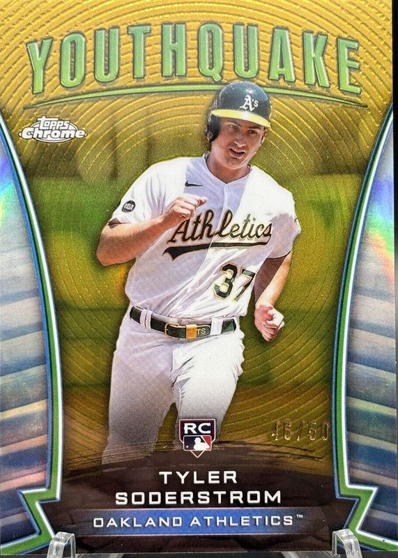 The Tyler Soderstrom 2024 Topps Chrome #YQ-16 Youthquake - Gold Refractor /50 Rookie card in Raw condition has moved up $3.95 (+24.7%) in the last 30 days and was last sold for $19.95 .