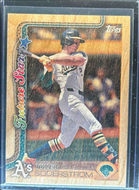 The Tyler Soderstrom 2025 Topps #72 Wood /25 card is 1 of 63 Tyler Soderstrom's card variations in the 2025 Topps set being tracked by Sports Card Investor, including Base, Aqua Holo Foil, Diamante Foil, Holo Foil, and Pink Diamante Foil.
