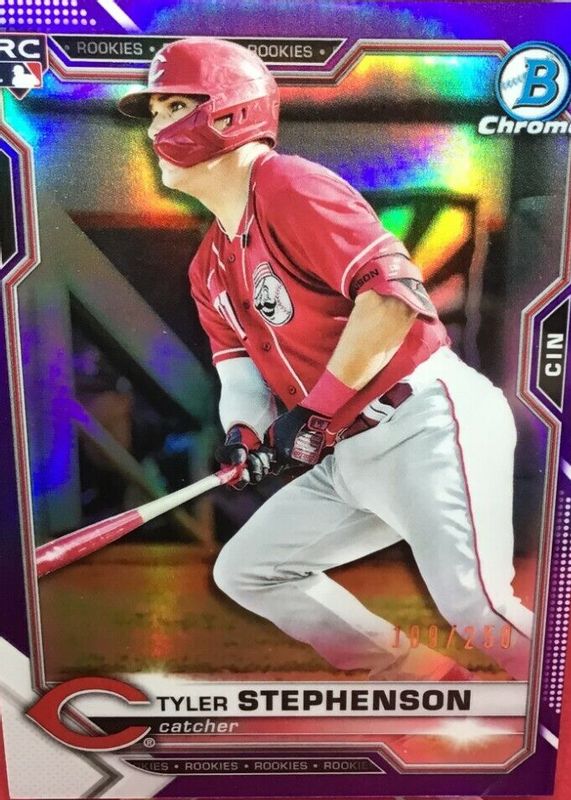 TYLER STEPHENSON 2021 Bowman Chrome #87 Purple Refractor Rookie #/250 Reds
