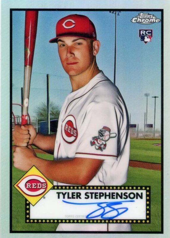This card is 1 of 2 Tyler Stephenson's card variations in the 2021 Topps Chrome Platinum Anniversary set being tracked by Sports Card Investor, including Autographs.