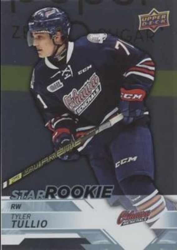 The Tyler Tullio 2018 Upper Deck CHL #344 Silver card is 1 of 10 Tyler Tullio's card variations in the 2018 Upper Deck CHL set being tracked by Sports Card Investor, including Base, Star Rookies UD Exclusives /100, Star Rookies Midnight /25, Star Rookies High Gloss /10, and Printing Plates Black /1.