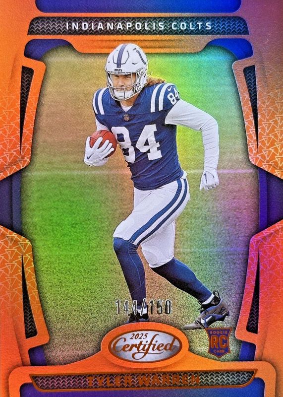 Tyler Warren 2025 Certified #113 Mirror Orange /150 Rookie RAW Price Guide