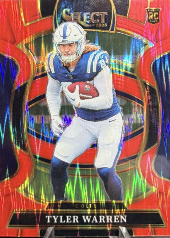 The Tyler Warren 2025 Select #33 Concourse Red Shock /249 Rookie card in Raw condition has moved up $2.01 (+25.2%) in the last 30 days and was last sold for $10.00 .