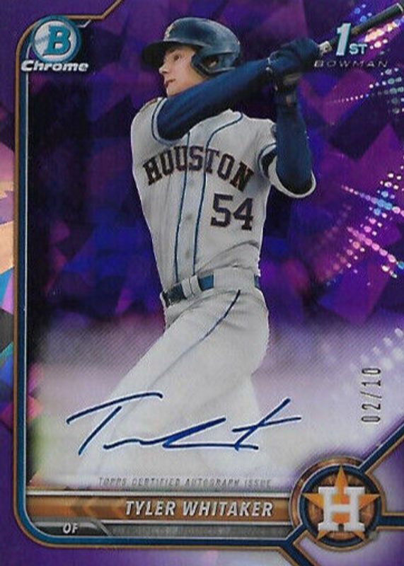 Recent Sales of Tyler Whitaker 2022 Bowman Sapphire Edition #BSPA-TW Chrome Prospect Auto - Purple /10 (1st) Raw