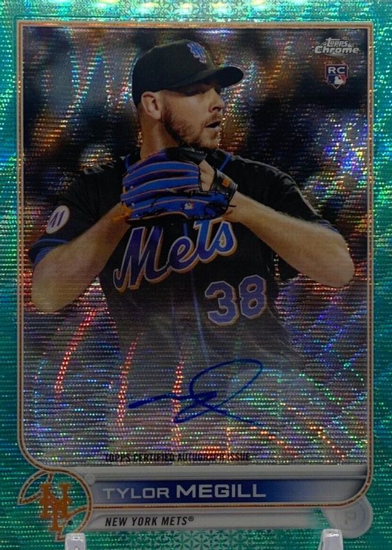 The Tylor Megill 2022 Topps Chrome #RA-TM Rookie Auto - Aqua Wave Refractor /199 card in Raw condition has not changed in price in the last 30 days and was last sold for $6.30 .