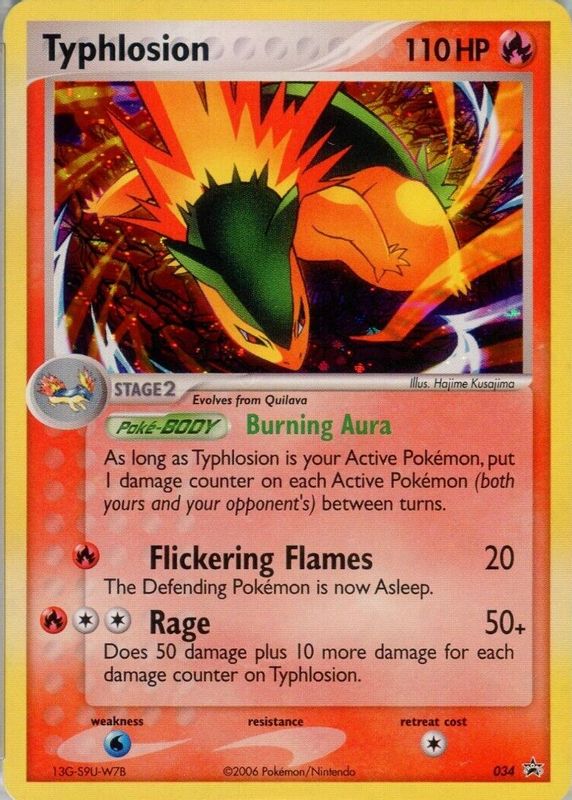 The Typhlosion 2006 Nintendo Black Star Promo #034 Value Pack II card in Raw TCG (Near Mint) condition has moved down -$14.05 (-88.1%) in the last 30 days and was last sold for $1.90 .