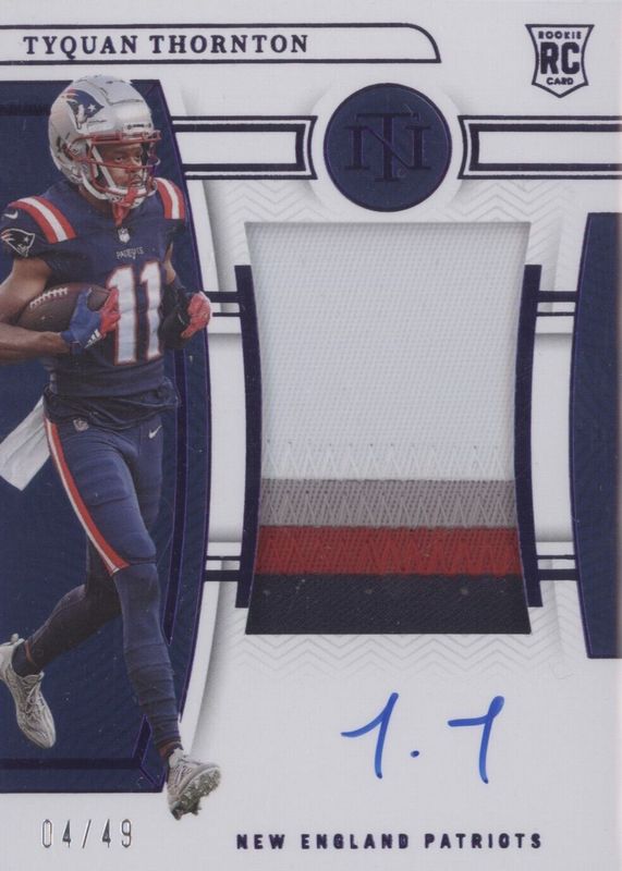 Tyquan Thornton 2022 National Treasures #178 Rookie Patch Auto - Purple /49 RAW Price Guide