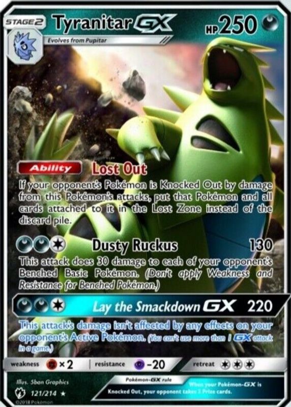 Tyranitar GX 2018 Sun & Moon: Lost Thunder #121/214 Holo RAW TCG (NEAR MINT) Price Guide