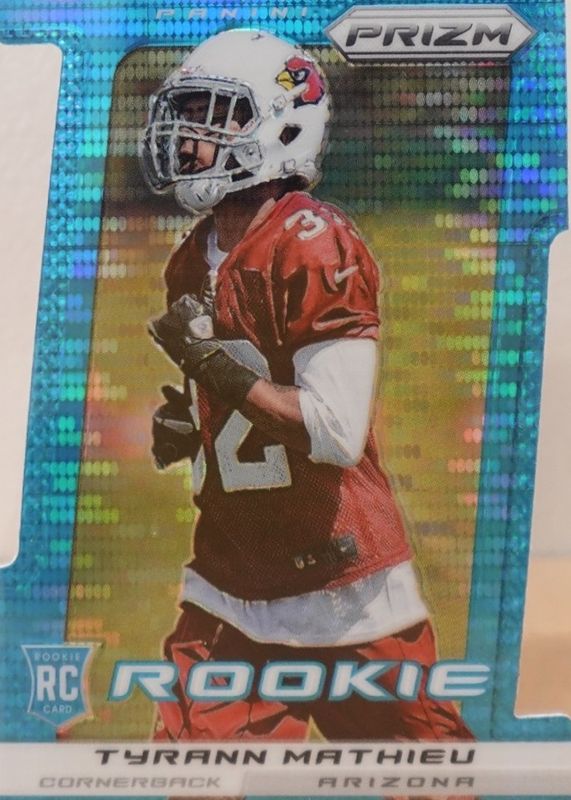 Tyrann Mathieu's Football cards are available in at least 58 sets. Tyrann Mathieu's biggest 7-day price movers are 2013 Prizm #296 Light Blue Die-Cut /15, 2013 Prizm #296 Orange Die-Cut /50, and 2016 Donruss #7 Aqueous Test.
