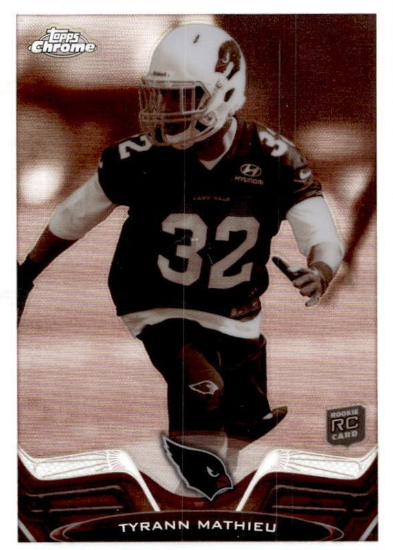 The Tyrann Mathieu 2013 Topps Chrome #4 Sepia Refractor /99 Rookie card in Raw condition has not changed in price in the last 30 days and was last sold for $12.50 .