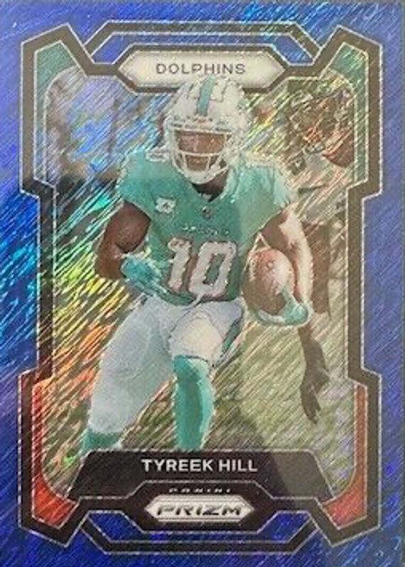 This card is 1 of 49 Tyreek Hill's card variations in the 2023 Prizm set being tracked by Sports Card Investor, including Blue Ice /99, Purple Wave /99, Blue Sparkle /96, No Huddle Blue /95, and Green Scope /75.