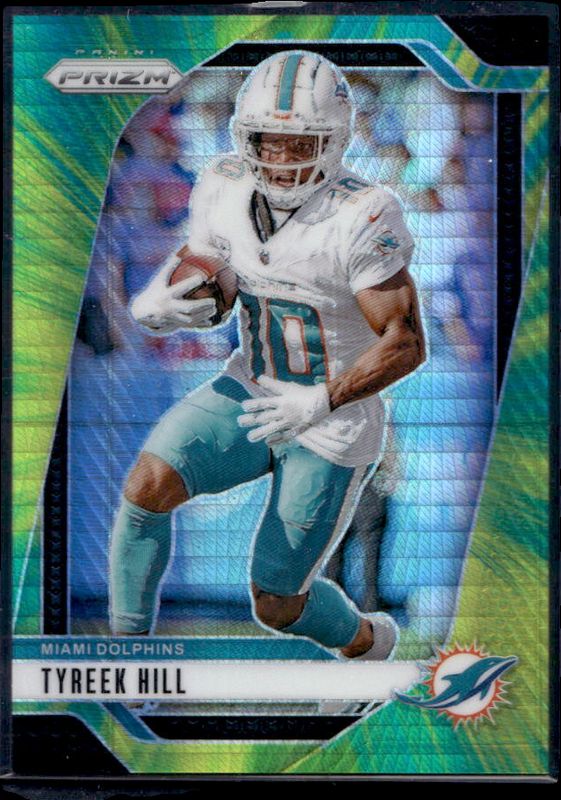 The Tyreek Hill 2024 Prizm #177 Hyper /180 card is 1 of 87 Tyreek Hill's card variations in the 2024 Prizm set being tracked by Sports Card Investor, including Base, Choice Blue Yellow Green, Choice Silver, Disco, and Green.