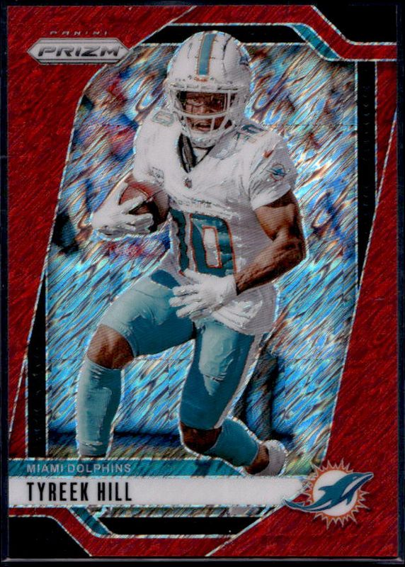 The Tyreek Hill 2024 Prizm #177 Red Shimmer /35 card is 1 of 87 Tyreek Hill's card variations in the 2024 Prizm set being tracked by Sports Card Investor, including Base, Choice Blue Yellow Green, Choice Silver, Disco, and Green.
