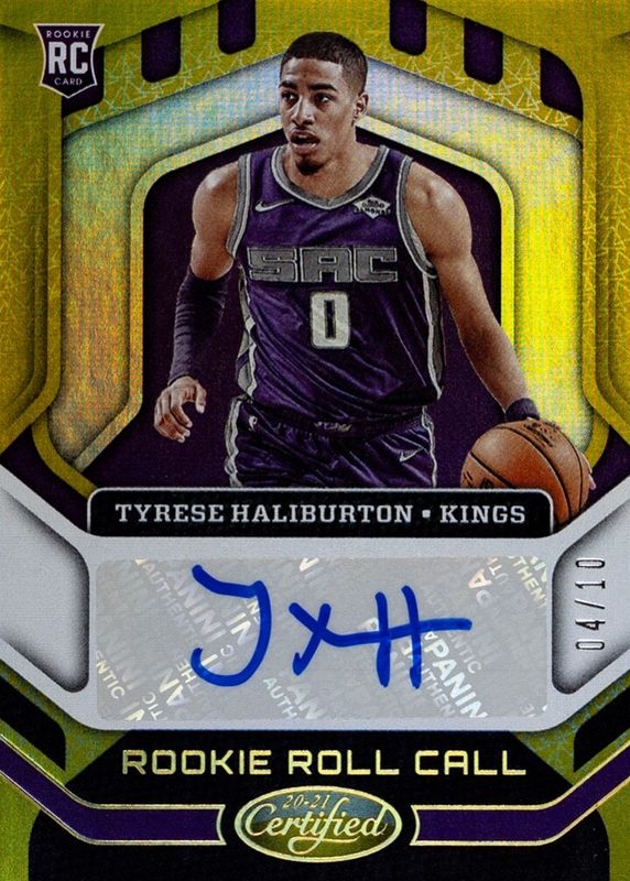 2020-21 Certified Tyrese Haliburton Rookie Roll Call Gold Auto RC /10