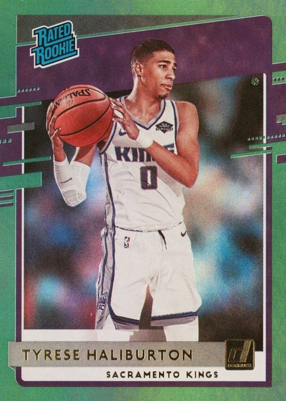 2020-21 Panini Donruss Tyrese Haliburton Green Flood Rated Rookie RC #231 Kings