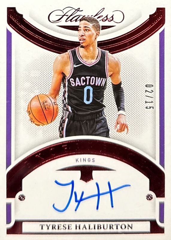 The Tyrese Haliburton 2020 Flawless #EXS-HAL Excellence Signatures - Ruby /15 Rookie card in Raw condition has not changed in price in the last 30 days and was last sold for $1,180.00 .