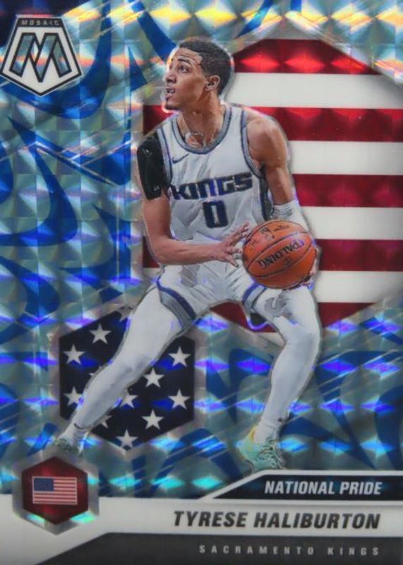 The Tyrese Haliburton 2020 Mosaic #258 National Pride - Reactive Blue Rookie card in Raw condition has moved down -$3.51 (-78.0%) in the last 30 days and was last sold for $0.99 .