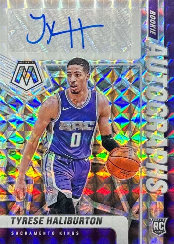The Tyrese Haliburton 2020 Mosaic #RA-THA Rookie Autographs - Mosaic card in Raw condition has not changed in price in the last 30 days and was last sold for $132.50 .