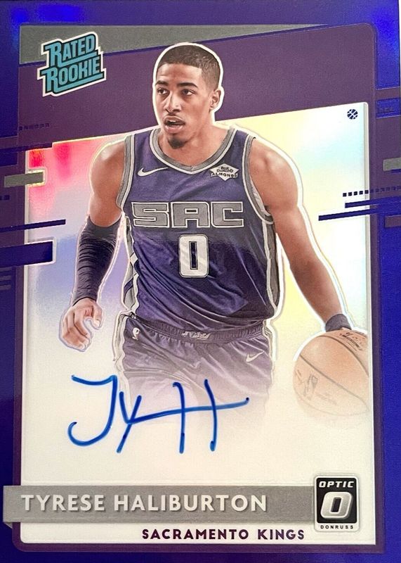 2020 PANINI DONRUSS OPTIC TYRESE HALIBURTON RATED ROOKIE SIGNATURES PURPLE AUTO