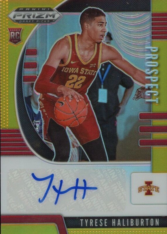 This card is 1 of 24 Tyrese Haliburton's card variations in the 2020 Prizm Draft Picks set being tracked by Sports Card Investor, including Prospect Autographs, Prospect Autographs - Green, Prospect Autographs - Hyper, Prospect Autographs - Pink Ice, and Prospect Autographs - Red Ice.