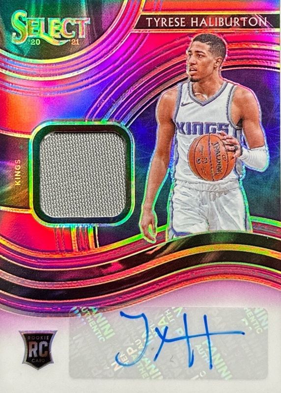 2020-21 Select Tyrese Haliburton Purple Prizm Rookie RC Jersey Auto #40/99 Kings