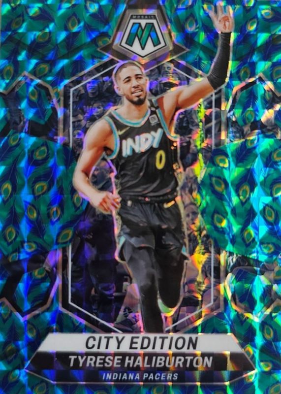 Tyrese Haliburton 2023-24 Mosaic CHOICE PEACOCK #289 City Edition SSP Case Hit