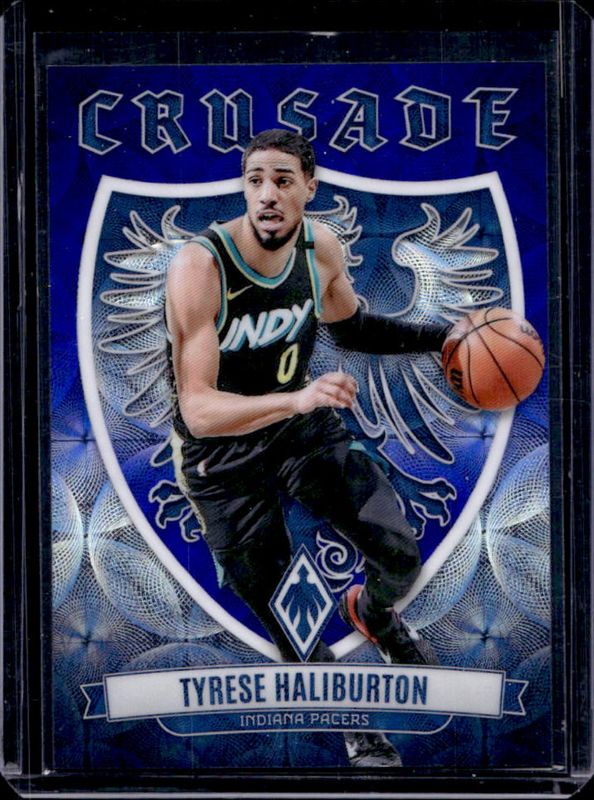The Tyrese Haliburton 2023 Phoenix #19 Crusade - International Blue /35 card is 1 of 165 Tyrese Haliburton's card variations in the 2023 Phoenix set being tracked by Sports Card Investor, including Base, Blue Ice, Color Burst, Dream Weaver, and Hieroglyphs.