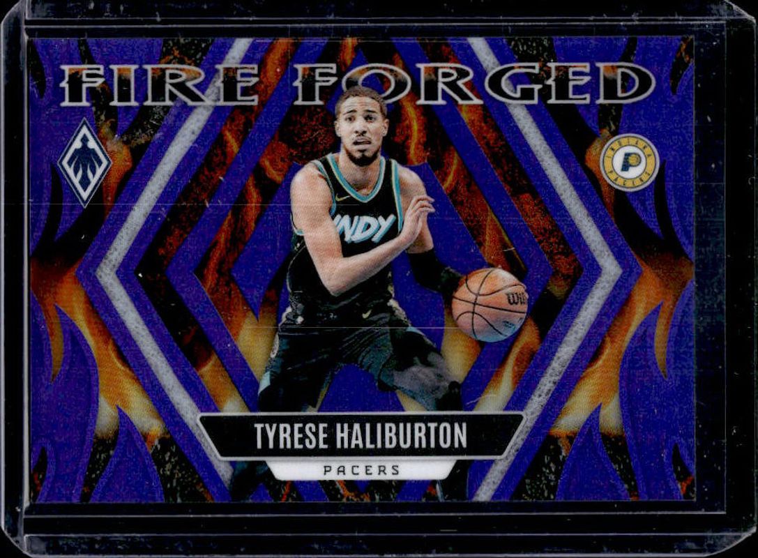 The Tyrese Haliburton 2023 Phoenix #8 Fire Forged - Purple /75 card is 1 of 165 Tyrese Haliburton's card variations in the 2023 Phoenix set being tracked by Sports Card Investor, including Base, Blue Ice, Color Burst, Dream Weaver, and Hieroglyphs.