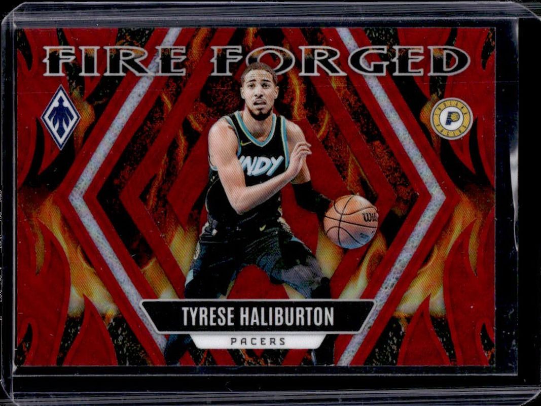The Tyrese Haliburton 2023 Phoenix #8 Fire Forged - Red /125 card is 1 of 165 Tyrese Haliburton's card variations in the 2023 Phoenix set being tracked by Sports Card Investor, including Base, Blue Ice, Color Burst, Dream Weaver, and Hieroglyphs.
