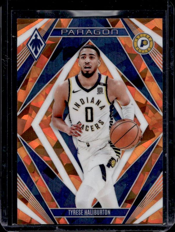 The Tyrese Haliburton 2023 Phoenix #25 Paragon - Orange Ice /249 card is 1 of 165 Tyrese Haliburton's card variations in the 2023 Phoenix set being tracked by Sports Card Investor, including Base, Blue Ice, Color Burst, Dream Weaver, and Hieroglyphs.