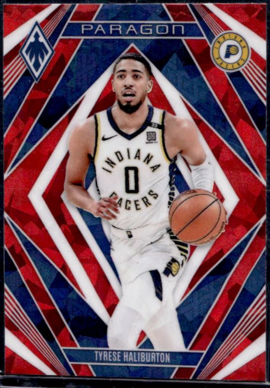 The Tyrese Haliburton 2023 Phoenix #25 Paragon - Red Ice card is 1 of 165 Tyrese Haliburton's card variations in the 2023 Phoenix set being tracked by Sports Card Investor, including Base, Blue Ice, Color Burst, Dream Weaver, and Hieroglyphs.