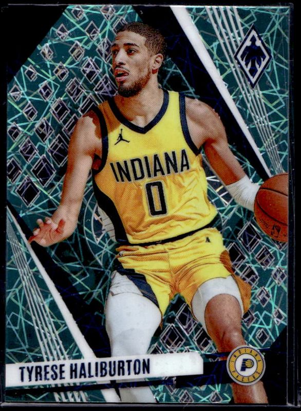 The Tyrese Haliburton 2023 Phoenix #99 Teal Lazer card is 1 of 165 Tyrese Haliburton's card variations in the 2023 Phoenix set being tracked by Sports Card Investor, including Base, Blue Ice, Color Burst, Dream Weaver, and Hieroglyphs.
