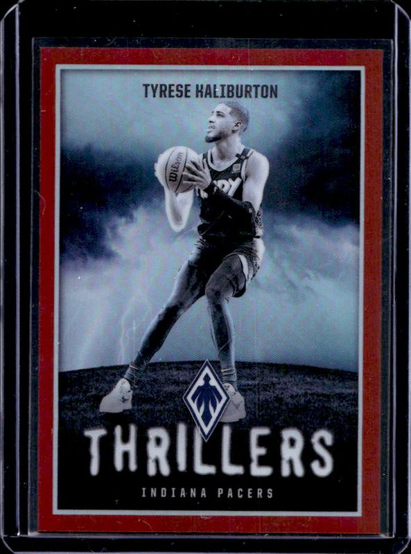 The Tyrese Haliburton 2023 Phoenix #21 Thrillers - Red /125 card is 1 of 165 Tyrese Haliburton's card variations in the 2023 Phoenix set being tracked by Sports Card Investor, including Base, Blue Ice, Color Burst, Dream Weaver, and Hieroglyphs.
