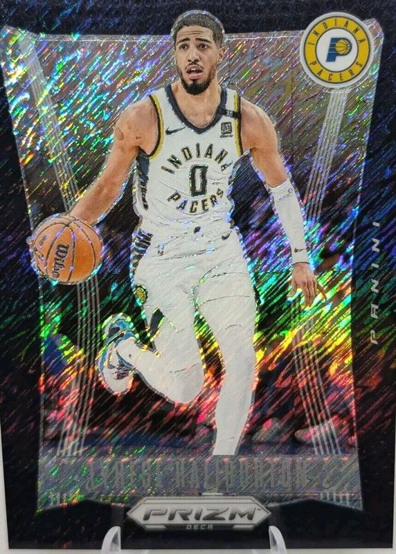 The Tyrese Haliburton 2023 Prizm Deca #247 Black Shimmer /1 card in Raw condition has not changed in price in the last 30 days and was last sold for $2,300.00 .