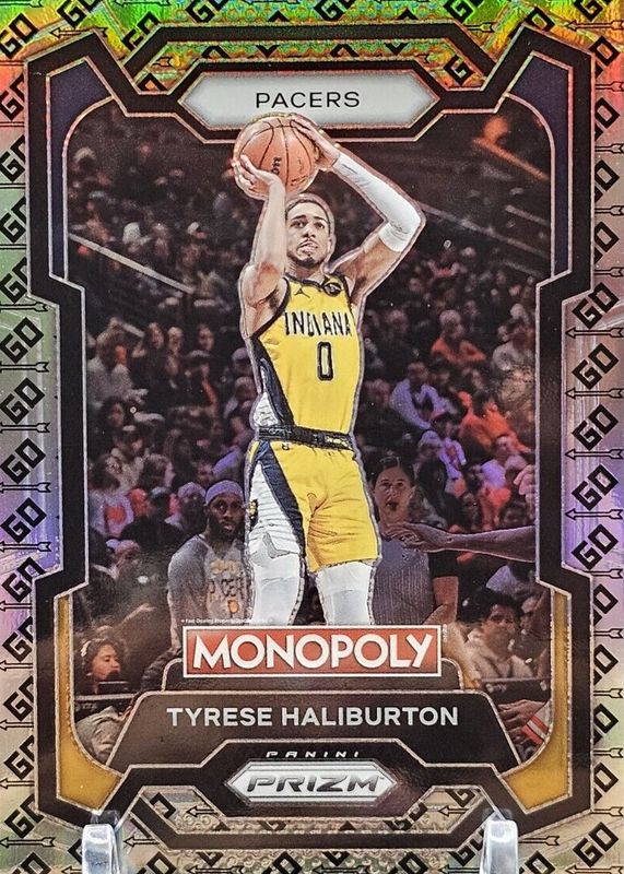 The Tyrese Haliburton 2023 Prizm Monopoly #34 GO Space card in Raw condition has not changed in price in the last 30 days and was last sold for $3.25 .