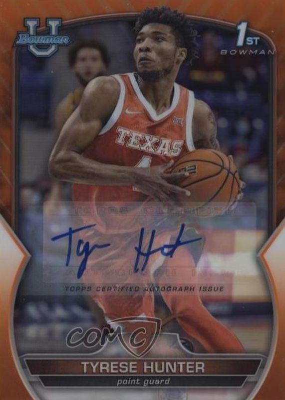 Tyrese Hunter 2022 Bowman Chrome University #15 Prospect Autographs - Orange Refractor /25 (1st) RAW Price Guide