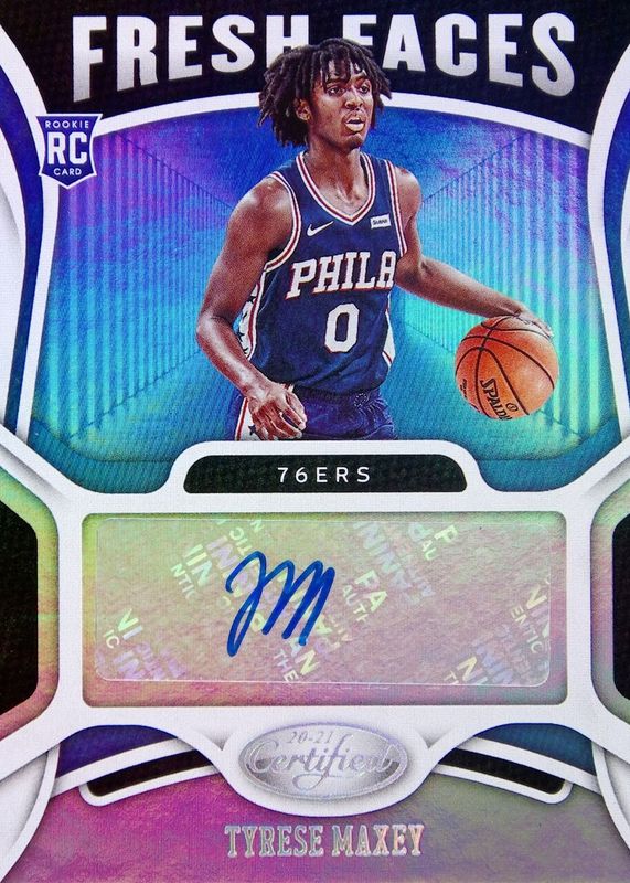 The Tyrese Maxey 2020 Certified #FS-MAX Fresh Faces Signatures Rookie card in Raw condition has not changed in price in the last 30 days and was last sold for $82.00 .