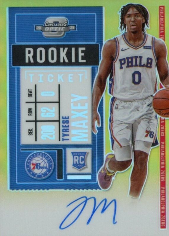 Tyrese Maxey 2020 Contenders Optic #120 Rookie Ticket Auto - Gold /10 (White Jersey) RAW Price Guide