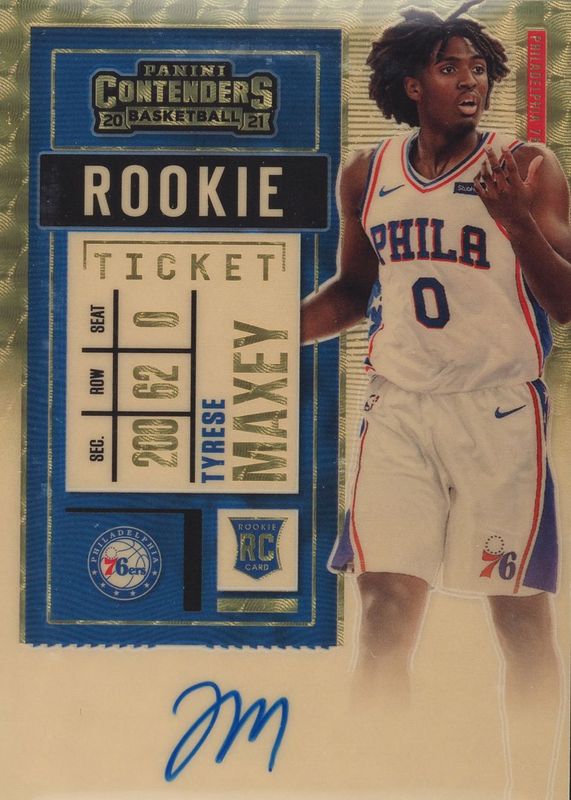 This card is 1 of 28 Tyrese Maxey's card variations in the 2020 Contenders set being tracked by Sports Card Investor, including Rookie Ticket Auto (No Ball), Rookie Ticket Auto - Clear Ticket (No Ball), Rookie Ticket Auto - Premium (No Ball), Rookie Ticket Auto - Premium Green Shimmer (No Ball), and Rookie Ticket Auto - Ticket Stub (/1 - No Ball).