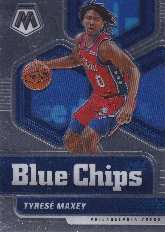 2020-21 Panini Mosaic - Blue Chips Tyrese Maxey #8 (RC)