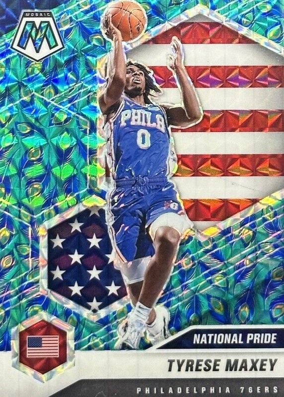 Best Prices Available For Sale of Tyrese Maxey 2020 Mosaic #259 National Pride - Choice Peacock /(SSP)