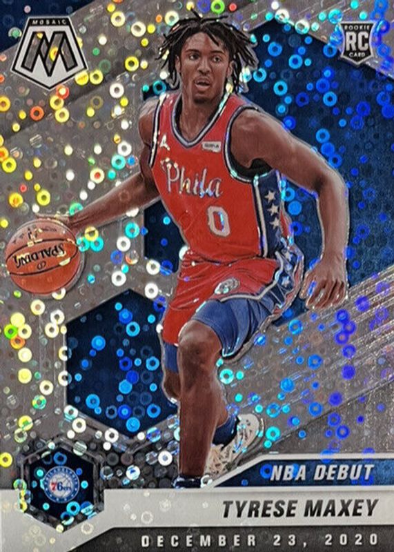 The Tyrese Maxey 2020 Mosaic #263 NBA Debut - Fast Break Rookie card in Raw condition has moved up $3.78 (+46.0%) in the last 30 days and was last sold for $12.00 .