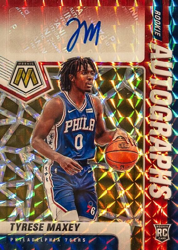 The Tyrese Maxey 2020 Mosaic #RA-TYM Rookie Autographs - Choice Fusion Red & Yellow card in Raw condition has not changed in price in the last 30 days and was last sold for $125.00 .