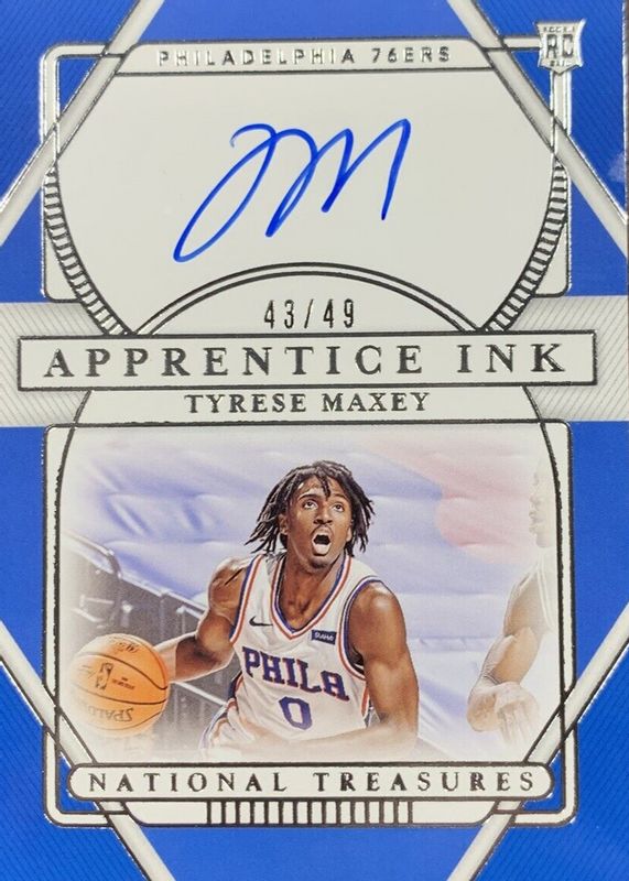 Best Prices Available For Sale of Tyrese Maxey 2020 National Treasures #API-TYM Apprentice Ink (/49)