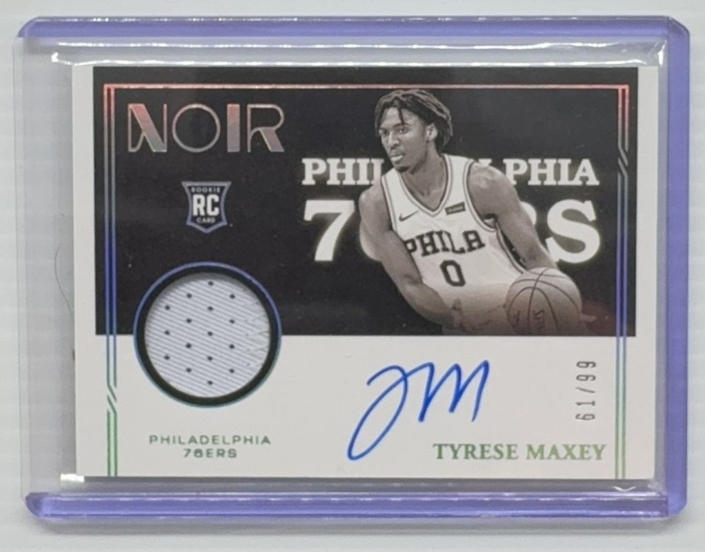 The Tyrese Maxey 2020 Noir #305 Base /99 Rookie card is 1 of 32 Tyrese Maxey's card variations in the 2020 Noir set being tracked by Sports Card Investor, including #388 Base /99, #345 Base /99, #155 Base /99, #185 Base /99, and #243 Base /99.